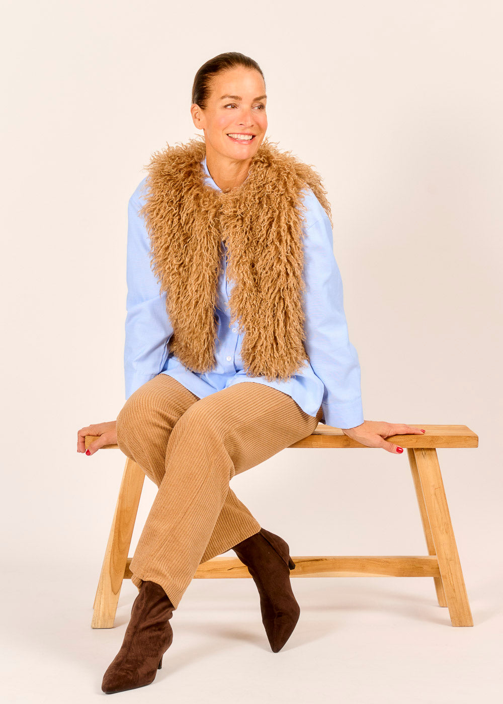 Bringe einen Hauch von luxuriösem Boho-Chic in deinen Kleiderschrank mit dieser Fake Fur Weste in warmem Caramello. Das lange, zottelige Kunstfell verleiht deinem Look eine aufregende Textur und hält dich kuschelig warm. Sie ist das perfekte Statement-Piece, um jedes schlichte Oberteil, wie etwa eine klassische Bluse, sofort aufzuwerten. Mit dieser Weste verleihst du deinem Outfit im Handumdrehen einen coolen und entspannten Vibe.