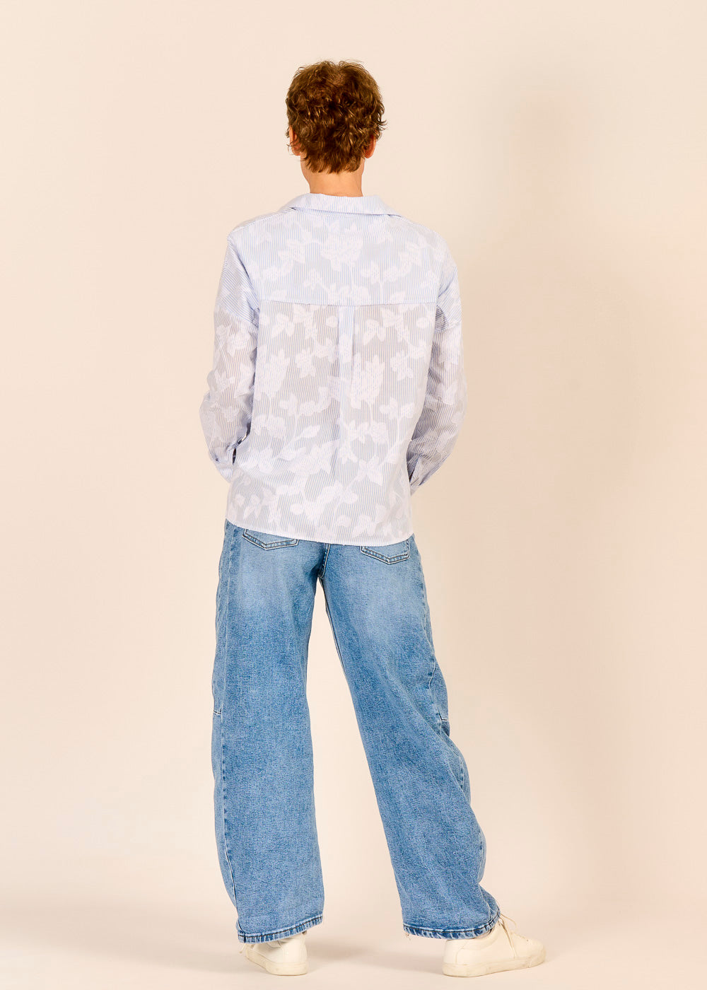 Klassische Streifen treffen auf moderne Raffinesse: Die feine Applikation verleiht der hellblauen Bluse einen besonderen Akzent. Ein stilvolles Lieblingsstück für alle, die klassische Looks mit dem gewissen Extra lieben.
