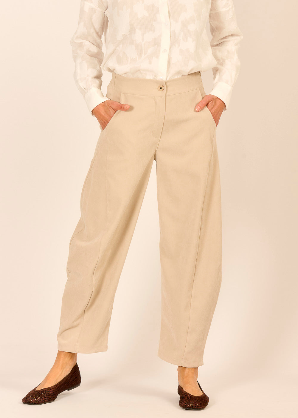 Die Ballon-Pantalone in 7/8-Länge verleiht deinem Look eine mühelose Eleganz. Der Beigeton ist perfekt für minimalistische Sommerlooks mit mediterranem Flair. Kombiniert mit einer Bluse und eleganten Flats wirkt sie besonders edel.