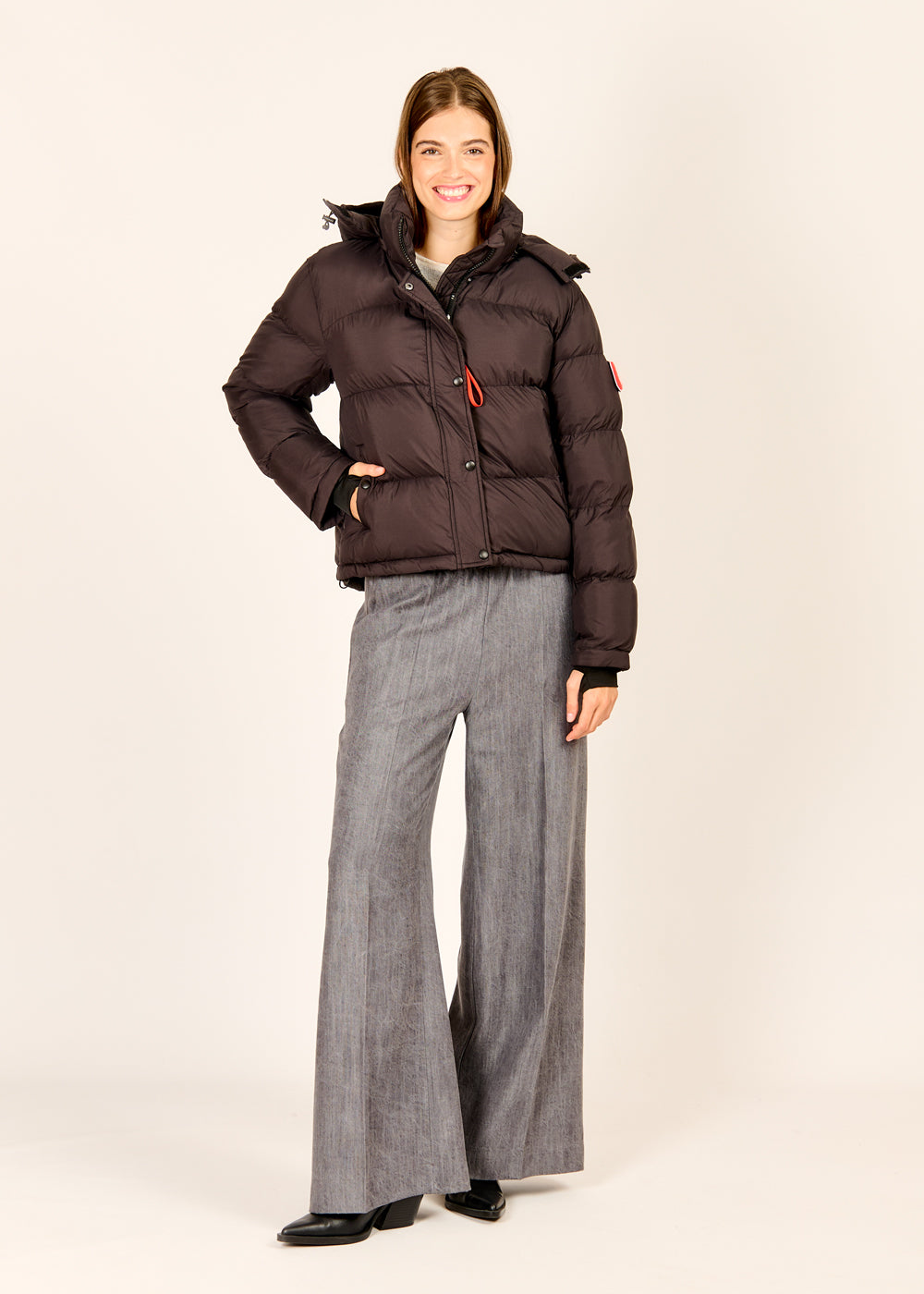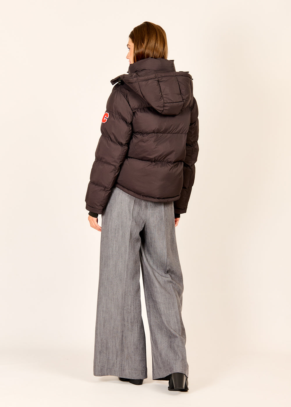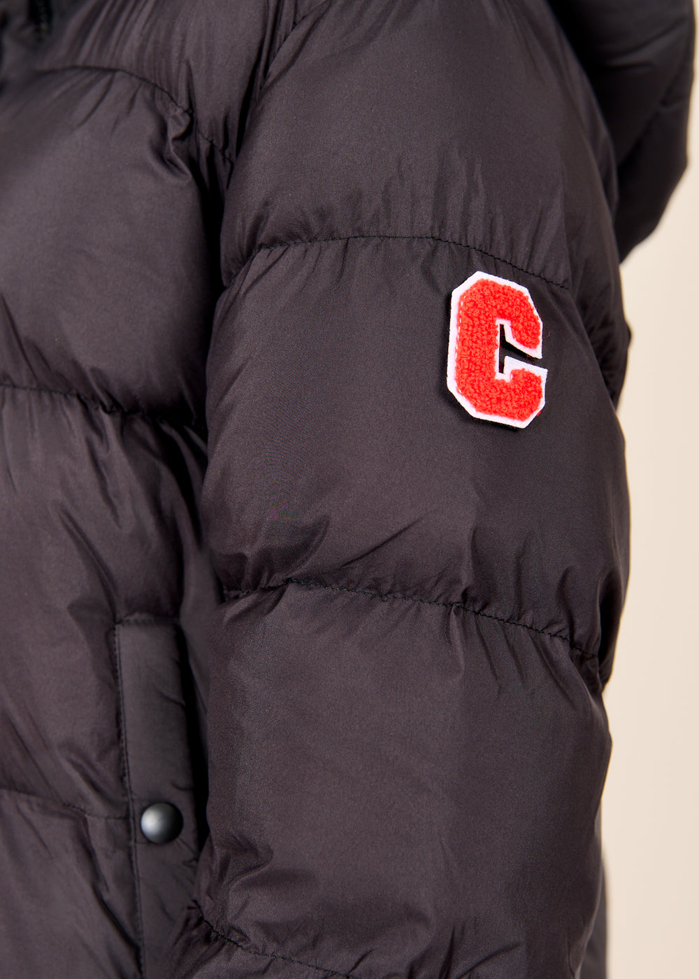 Die Kurzsteppjacke von Como No. 1 in elegantem nero vereint urbane Lässigkeit mit funktionalem Design. Ihre warme, synthetische Füllung und die abnehmbare Kapuze mit Tunnelzug machen sie zum perfekten Begleiter für kühle Tage. Praktische Details wie seitliche Eingrifftaschen mit Druckknopf und der verstellbare Saum sorgen für Komfort und eine individuelle Passform. Abgerundet wird der Look durch das markante Frottee-Label-Patch am Ärmel, das dem Klassiker eine sportive Note verleiht.