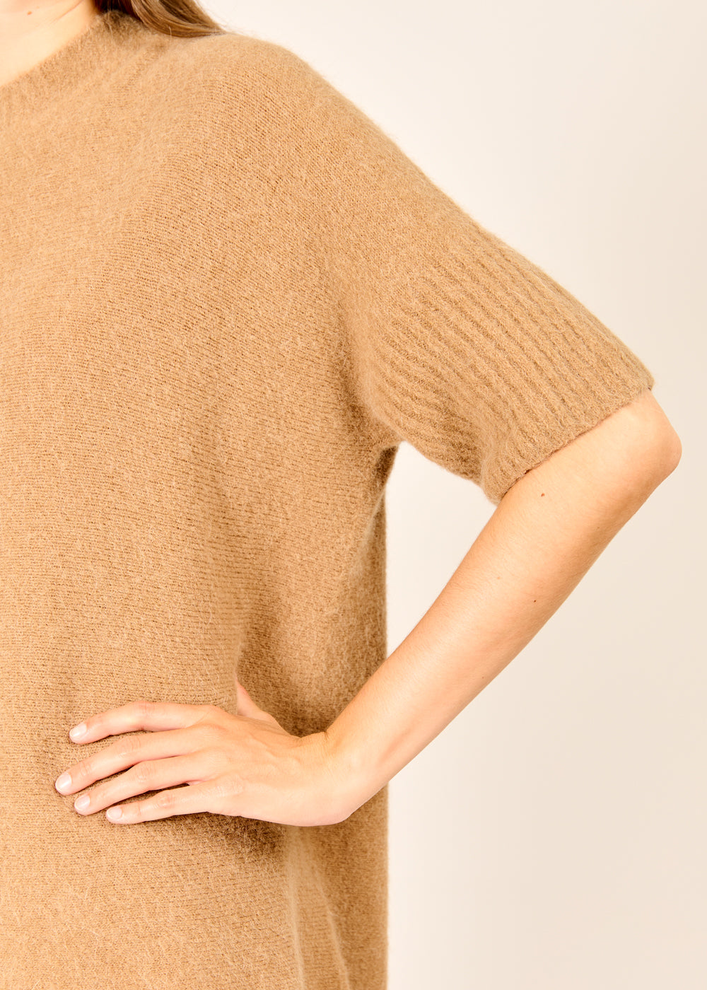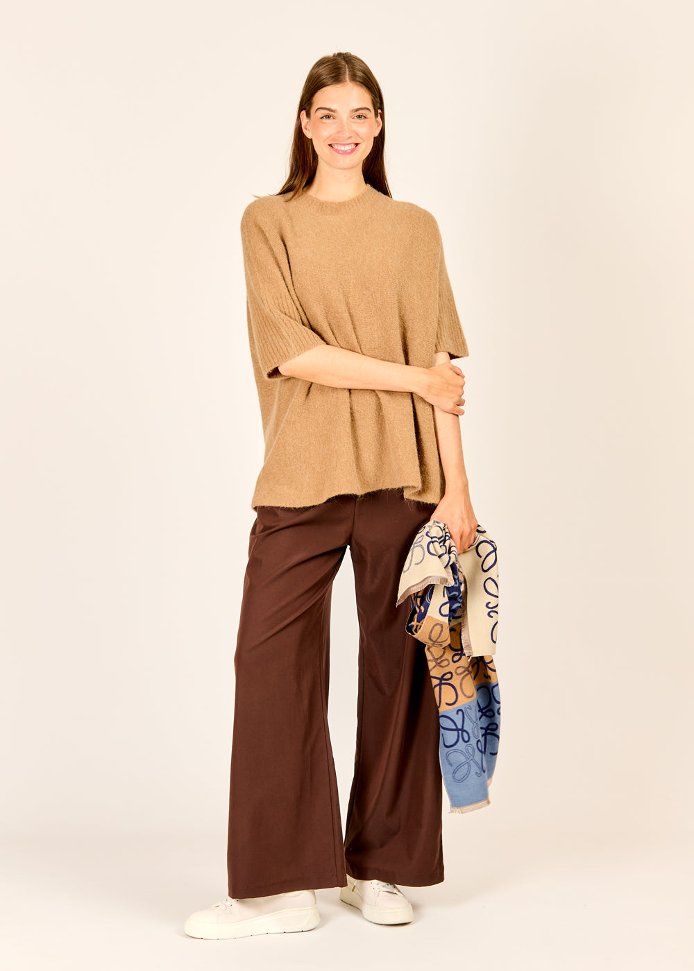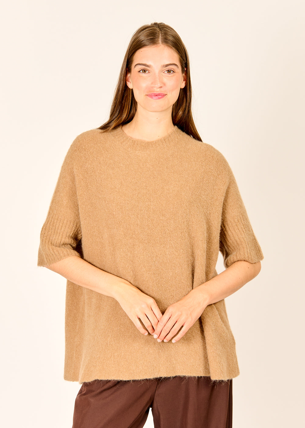 Ein absolutes Must-have für entspannte Tage: Dieser lässige Pullover in Camel-Ton umhüllt Sie mit behaglicher Wärme und setzt dabei ein modisches Statement. Der weite Schnitt und die halblangen Ärmel verleihen ihm eine moderne Silhouette, die mühelos mit anderen Kleidungsstücken harmoniert. Perfekt für einen stilvollen Auftritt, ohne auf Komfort verzichten zu müssen.