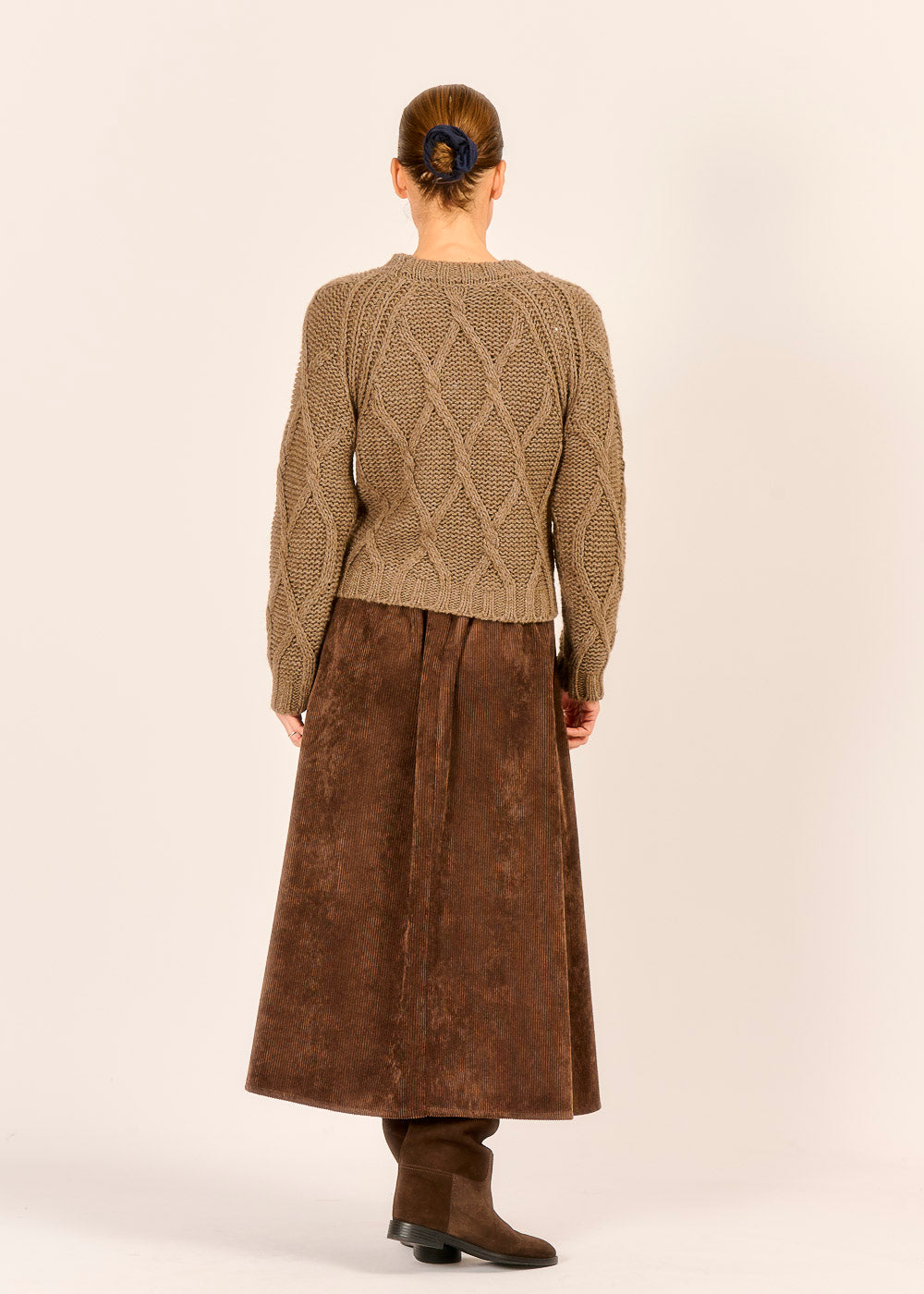 Dieser herrliche Pullover in einem warmen, eleganten Kakao-Ton umhüllt Sie mit einer rustikalen Gemütlichkeit, perfekt für kühle Tage. Das Zopfmuster zieht sich all over über das gesamte Modell, nicht nur vorne, und verleiht dem Strickstück eine beeindruckende Textur und hochwertige Tiefe. Kombinieren Sie diesen luxuriösen Pullover mit Röcken oder Hosen für einen stilvollen Look, der traditionelle Handwerkskunst und modernen Komfort vereint.