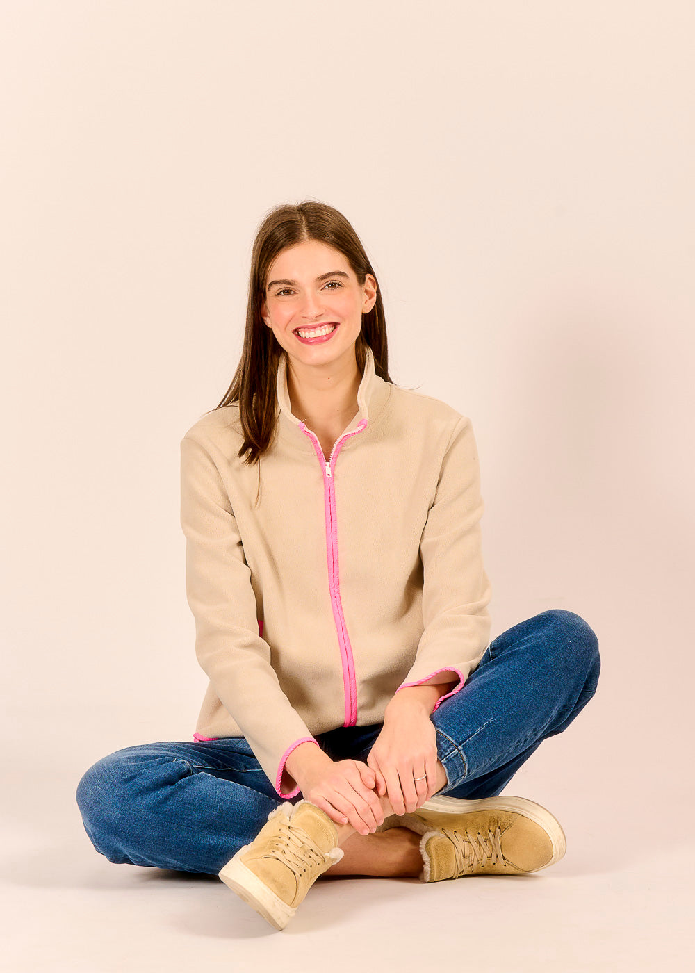 Die Fleecejacke aus Viskose schenkt dir Wärme und Geborgenheit. Dabei trifft Komfort auf zeitlosen Stil und farbliche Akzente. Die Kontrastdetails lassen das Design lebendig wirken.  Ein besonderes Stück für alle, die Komfort lieben und subtil Farbe ins Spiel bringen möchten.