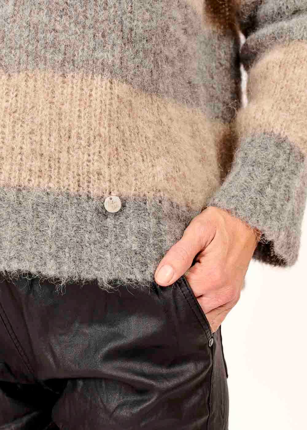 Hol dir den lässigen Ringelpullover in Grigio – perfekt für einen entspannten Look mit Stil. Der weiche Stoff und das zeitlose Streifendesign sorgen dafür, dass du dich rundum wohlfühlst!