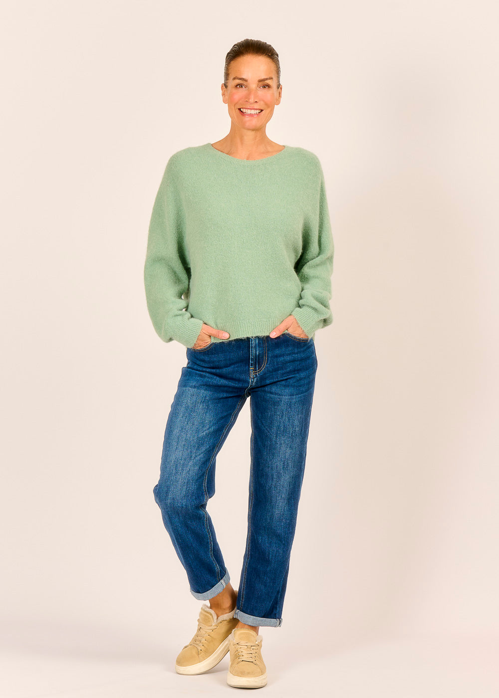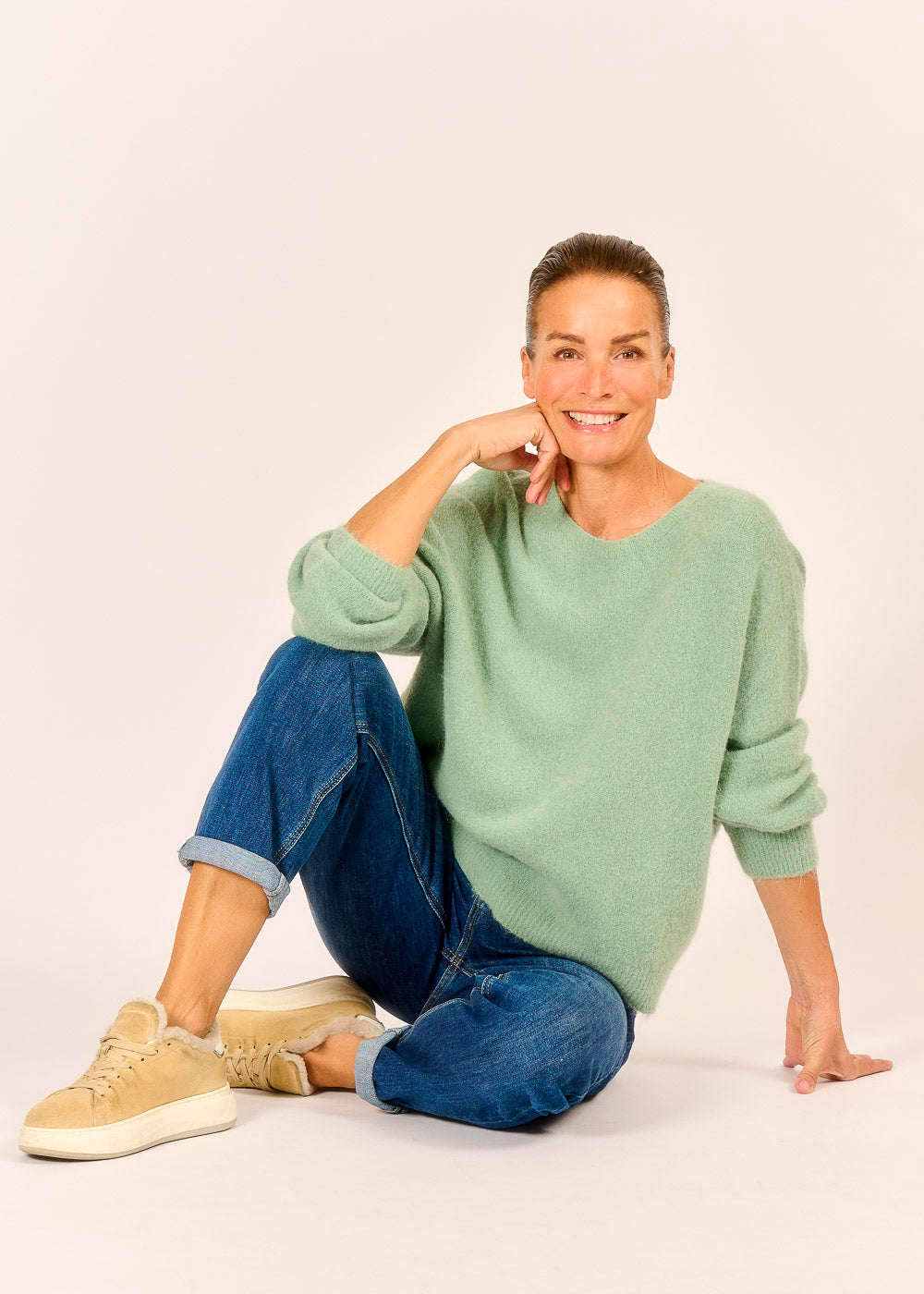 Dieser Wohlfühlpullover in zartem Menta bringt frische Leichtigkeit und pure Gemütlichkeit in deinen Alltag. Sein lässiger Schnitt und der kuschelig weiche Stoff machen ihn zum idealen Begleiter für entspannte Stunden und stilvolle Casual-Looks. Ein Lieblingsstück, das Komfort und modernen Charme mühelos vereint.