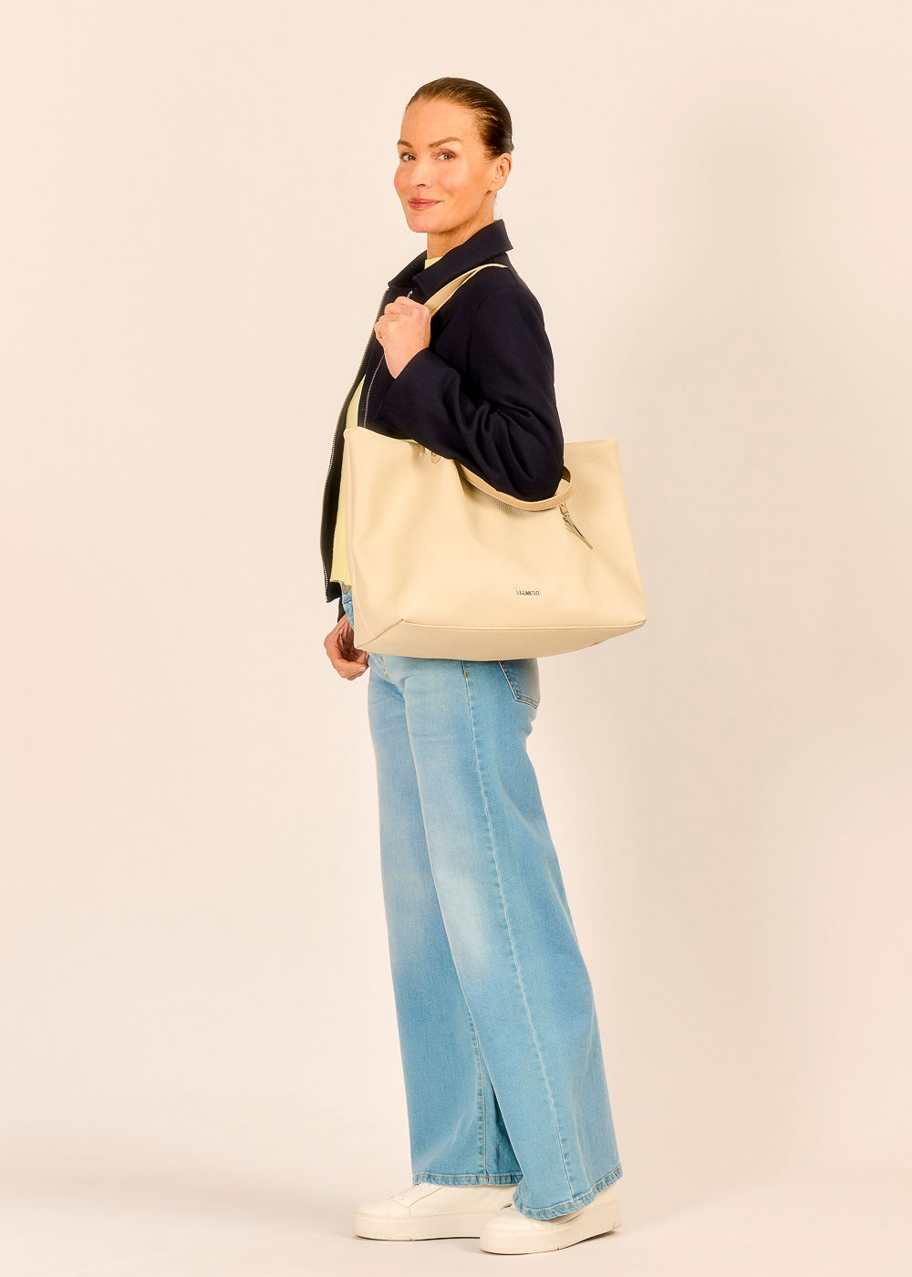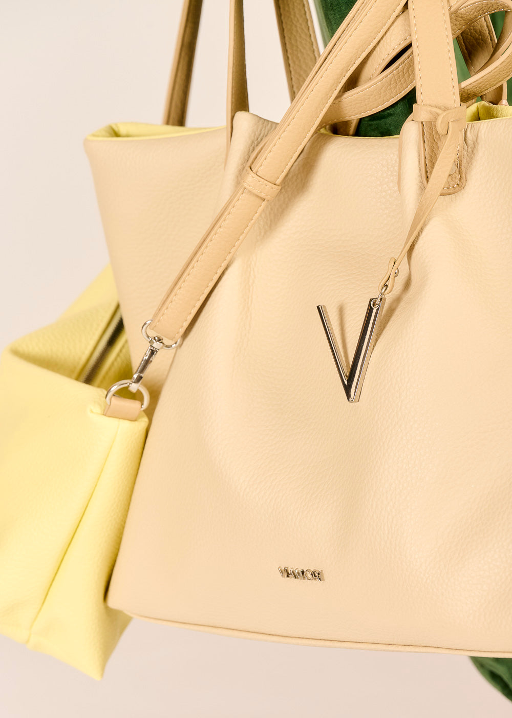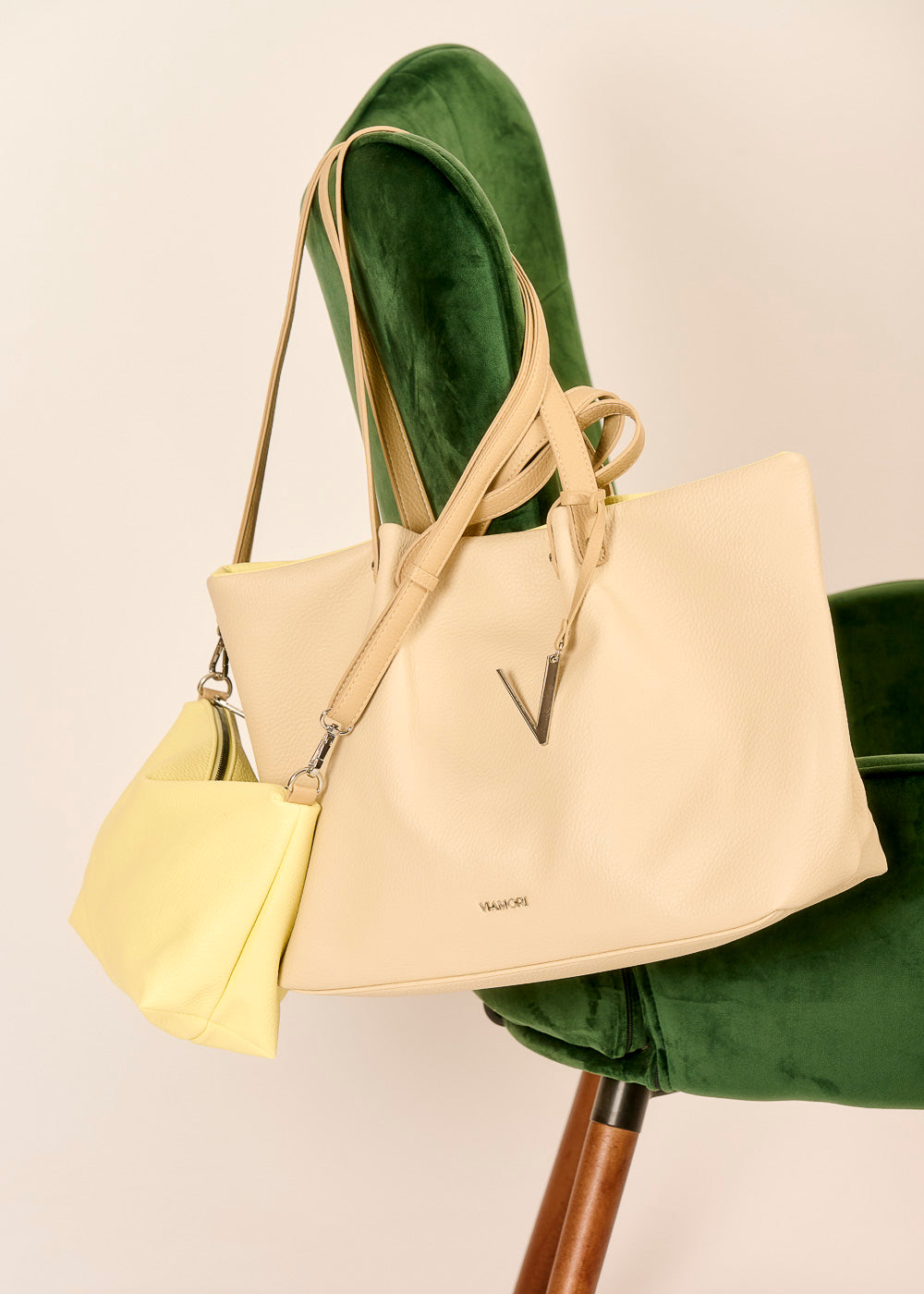 Dieser Shopper ist ein überraschendes Multitalent und dein praktischer und stilvoller Begleiter für den Alltag. Das neutrale Beige passt zu jedem Outfit, während die Innentasche einen überraschenden Farbtupfer setzt und gute Laune garantiert. Die clevere Innentasche ist nicht nur ein Ordnungwunder, sondern strahlt auch einzeln.